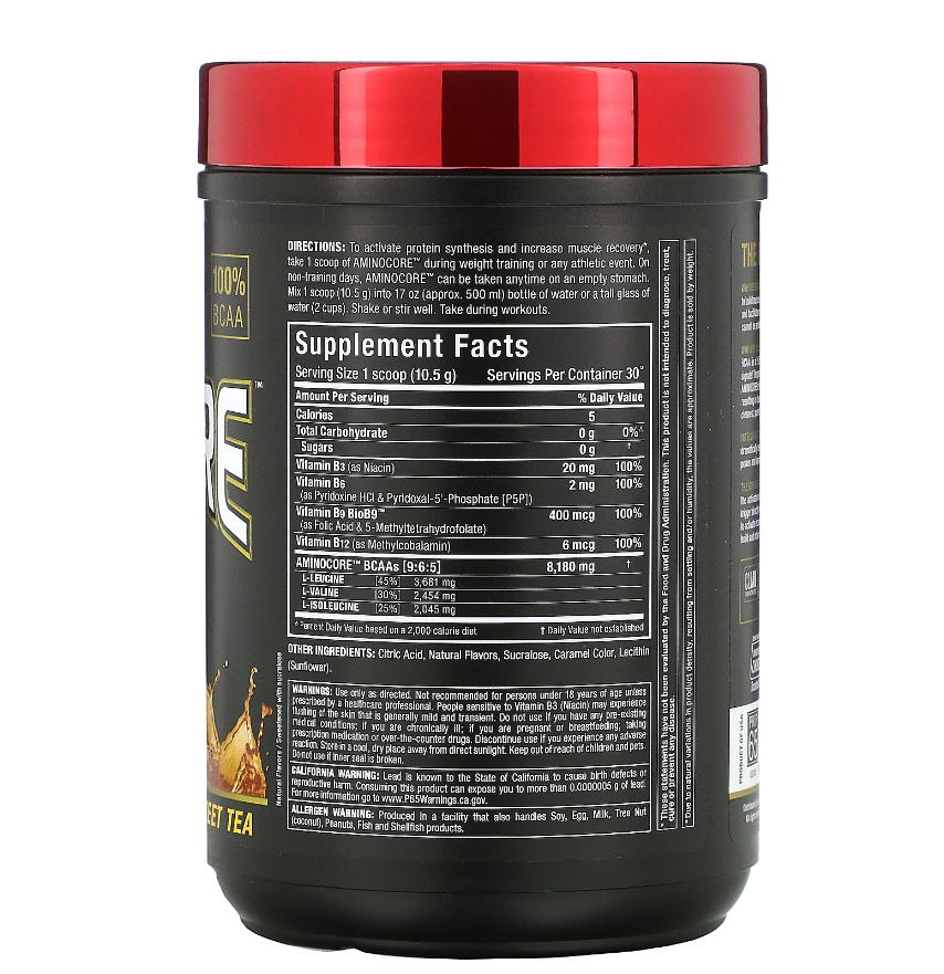 Aminocore съдържа цели 8180 мг ВСАА! Точно така, повече от 8 грама ВСАА в един пакет или една лъжица. Перфектен е за консумация по време на тренировка, или когато сте далеч от фитнеса и изпитвате необходимост да предотвратите катаболните разкъсвания на мускулната тъкан и да увеличите синтеза на протеин!