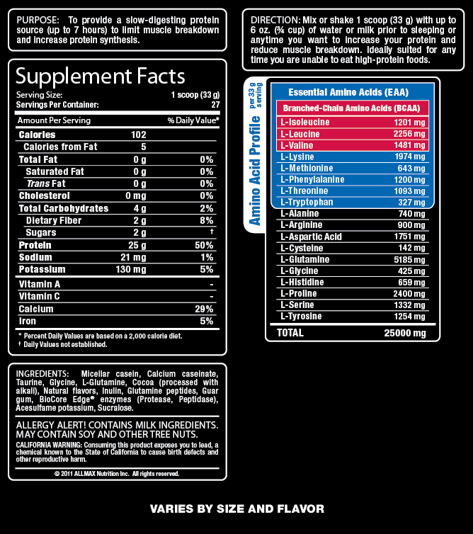 Casein-FX е укрепен с аминокиселинен комплекс, глутамин, таурин, глицин и глутамин прекурсори, които стимулират растежа и ускоряват възстановяването. Casein-FX има тайно оръжие: BioCore EDGE™, патентована ензимна технология, която буквално увеличава количеството на усвояваните аминокиселини непрекъснато.