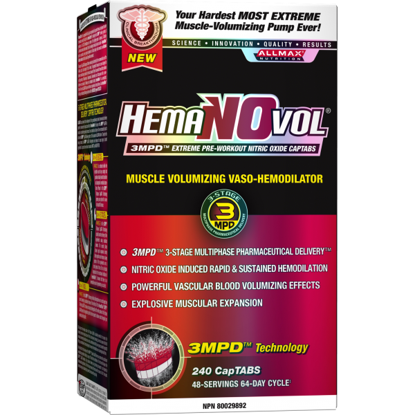 HemaN.O.vol ™ е създаден с една единствена цел – да Ви даде мускулен обем, който е толкова силен, че никога няма да го забравите. Екипът на компанията ALLMAX е използвала авангардни, научно утвърдени съставки и ги е смесила с фармацевтични агенти за доставка, всичко това довежда HemaN.O.vol до изцяло ново ниво – ниво, на което Вие ще чувствате напомпването във всеки мускул, по всяко време преди и след тренировка. Гарантирано!