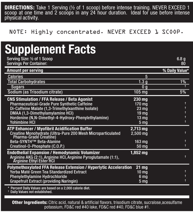 Начин на употреба: Вземете 1 лъжичка преди интензивна тренировка. Потребителите, които са чувствителни към предтренировъчните стимуланти трябва да започнат употребата с ½ лъжичка. Никога не превишавайте 1 лъжичка за един прием и 2 лъжички за 24-часов период. Идеален за използване преди интензивна физическа активност.