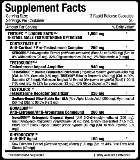 TestoFX Loaded е първият продукт в света, включващ в себе си 5-степенна система за оптимизация на тестостерона, предназначена да увеличи нивата на тестостерон, като минимизира отрицателните андрогенни и естрогенни странични ефекти