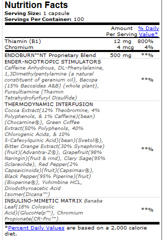 Серията “Evolution Series” на BSN oтново е решила да изуми индустрията на хранителни добавки с новия си продукт от серията, а имено ENDOBURN NT. Иновативен терморегулатор и забързващ метаболизма продукт, създава нов клас продукти от типа фет-бърнари. Главните съставки на продукта са специално създадени за да покачват температурата на тялото, да забързват метаболизма, по – правилното усовяване на въглехидрати и мазнини.