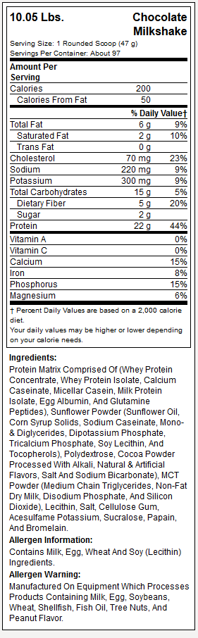 Syntha-6 – Протеинова хранителна добавка, състояща се от 6 различни вида протеин, с различни времена на абсорбиране! 8-часово непрекъснато подхранване на мускулатурата. В Syntha-6 са добавени изключително важните BCAA’s, глутаминови пептиди, ензими и основни мастни киселини + 5гр. фибри във всяка доза подобряващи храносмилането и усвояването. И не на последно място Syntha-6 се предлага неустовим вкус!