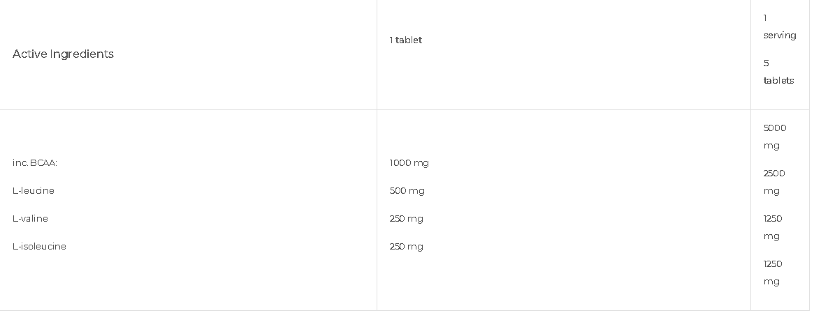 Аминокислеините в състава са прецизно дозирани в перфектното съотношение 2:1:1, за да осигурят максимална издръжливост и ефективно възстановяване на тъканите по време на и след тренировка. Приемайки този продукт след силова тренировка, ВСАА стимулират синтеза на протеини, който играе важна роля за растежа на мускулите.