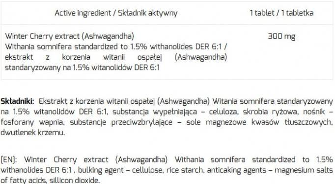 Екстрактът от корен на ашваганда (индийски женшен, Withania somnifera) със стандартизирано съдържание на 1,5% витанолиди DER 6:1 в MuscleCare Ashwagandha 90 таблетки ви дава мощен адаптоген на справяне със стреса, средство за подобряване на физическата форма и настроението, подобряване на паметта и концентрацията, повишаване на нивата на енергията и драстично намаляване на усещането за умора.