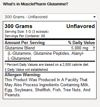 Продуктът Glutamine е част от основната серия на Muscle Pharm, който притежава уникална бленда от три вида глутамин в себе си: Л-Глутамин, Глутаминови пептиди и Аланил Глутамин.