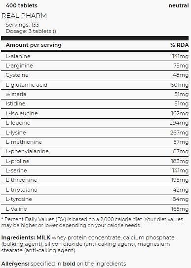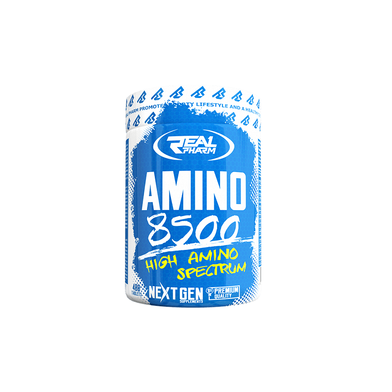 Real Pharm Amino 8500 е хранителна добавка съдържаща най-високо качество аминокиселини под формата на таблетки. Аминокиселиите са важни за всеки трениращ и ви подкрепят и помагат да надграждате физиката си с всяка следваща тренировка. Избирайки качествен и надажден суплемент, вие си гарантирате резултати и развитие. Amino 8500 съдържат аминокиселини от суроватъчен протеин концентрат, което е гаранция за високо ниво на абсорбция и резултатност.