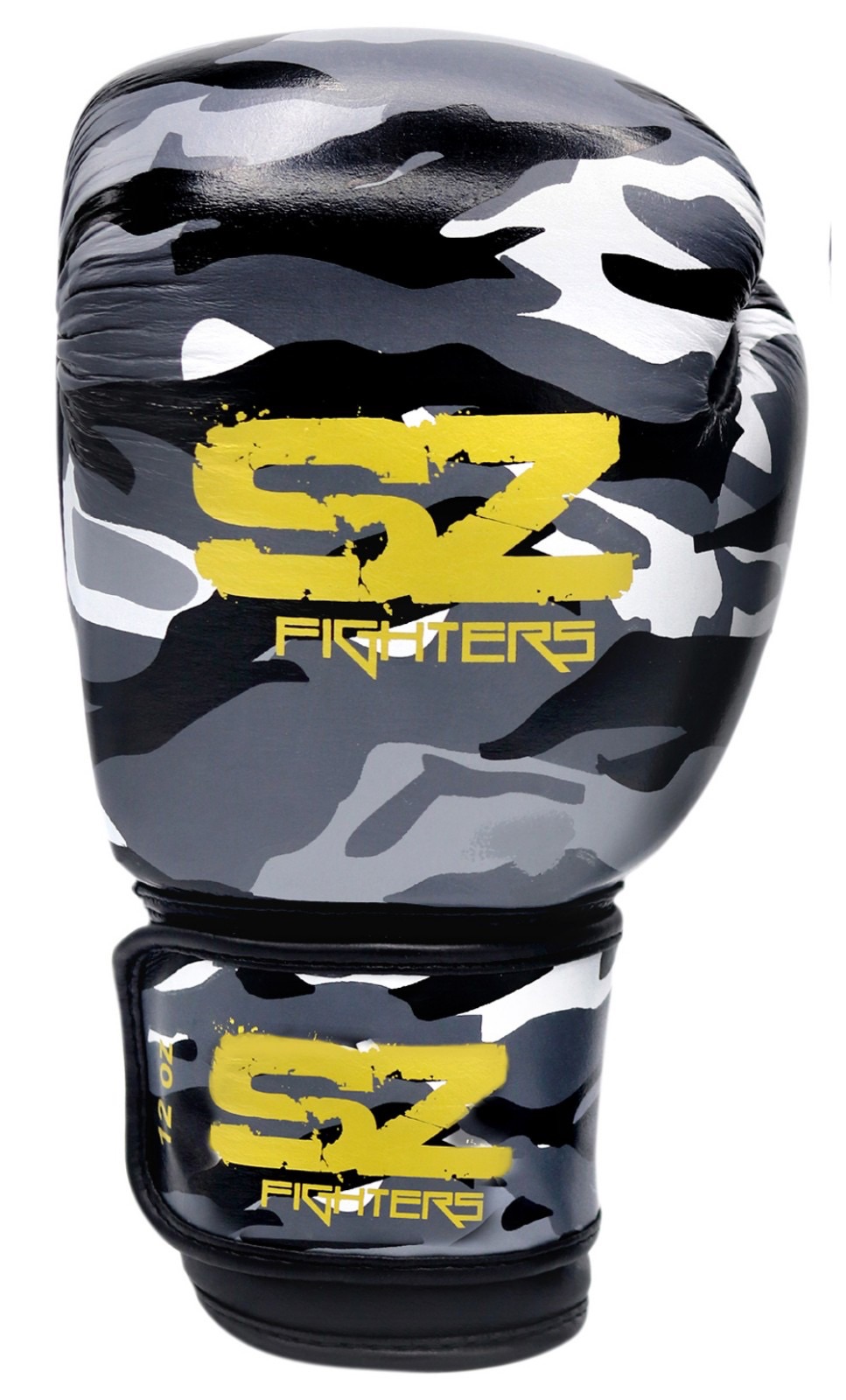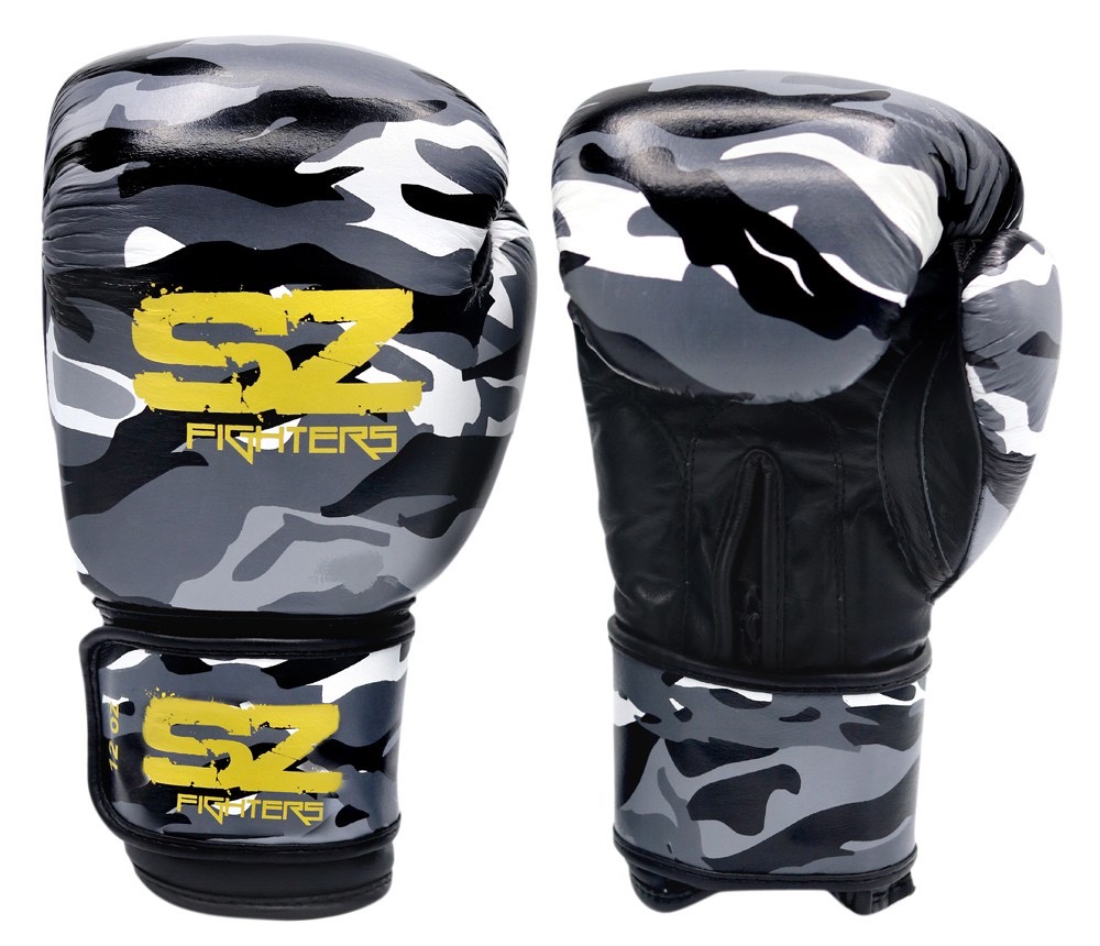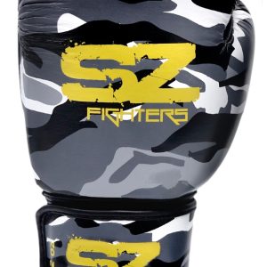 Боксовите ръкавици на вече доказаната с времето и високото качество марка – SZ Fighters пусна на пазара нова линия ръкавици – Camo line. Серията се отличава с класическа форма на боксова ръкавица, съчетана с модерна и атрактивна визия. Нещата които се забелязват при първото им слагане върху ръка са високото качество на изработка. Mоделът е изработен от висококачествена естествена телешка кожа, фиксиран (“заключен”) палец за по-добра защита, перфектно балансирана пяна в горната част на ръкавицата и не на последно място – много добра и удобна фиксация на китката за максимална сигурност и протекция.