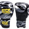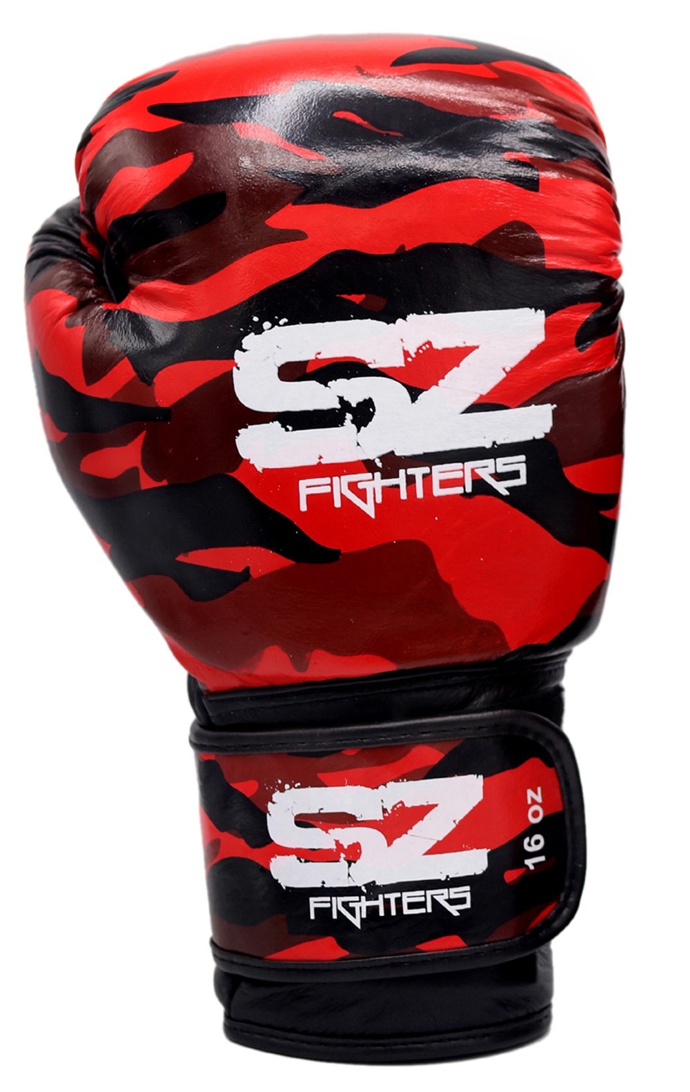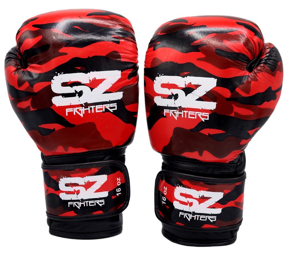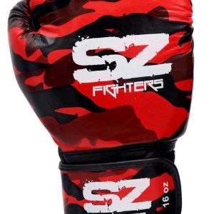 Боксовите ръкавици на вече доказаната с времето и високото качество марка – SZ Fighters пусна на пазара нова линия ръкавици – Camo line. Серията се отличава с класическа форма на боксова ръкавица, съчетана с модерна и атрактивна визия. Нещата които се забелязват при първото им слагане върху ръка са високото качество на изработка. Mоделът е изработен от висококачествена естествена телешка кожа, фиксиран (“заключен”) палец за по-добра защита, перфектно балансирана пяна в горната част на ръкавицата и не на последно място – много добра и удобна фиксация на китката за максимална сигурност и протекция.