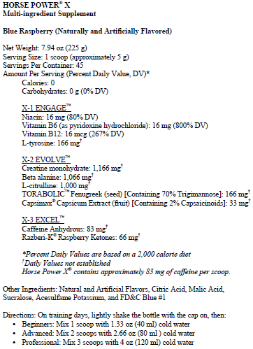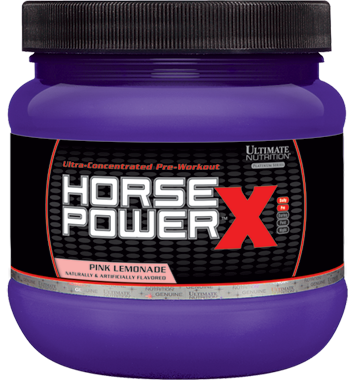Horse Power® X е най-новата версия на пред-трениворъчният продукт на Ultimate Nutrition, който успешно бе пуснат на пазара през 2006 година. От тогава Ultimate Nutrition не спира да усъвършенства продукта, което го прави един от най-напредналите буустъри налични на пазара. Със свойте 11 съставки той предоставя нужното гориво за да завършите и най-изтощителните тренировки успешно. В състава си е включен стандартизиран екстракт от сминдух, който при силови тренировки показва увеличени на чистата мускулна маса и сила. В допълнение са добавени и Бета-аланин (3.2 гр.), креатин монохидрат (3.5 гр.), Цитрулин малат (3.0 гр.), Capsimax™ (100 mg) и Razberi-K® (200 mg) – които задействат термогенезата, Caffeine anhydrous (250 mg), Niacin (50 mg), L-tyrosine (500 mg), витамини B6 (50 mg) и B12 (50 mcg).