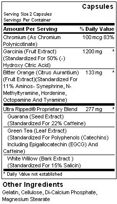 Съставките в Ultra Ripped са с различни полюси на действие, подпомагащи отслабването: